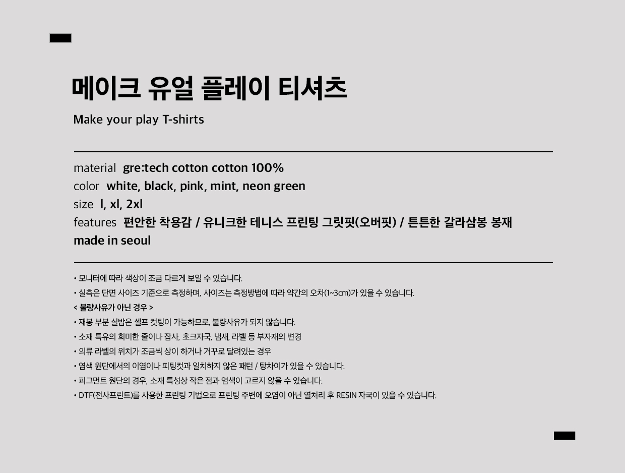 ㆍ교환 및 반품은 본 사이트 게시판 또는 그라운즈 스웻 담당자로 연락 주시면