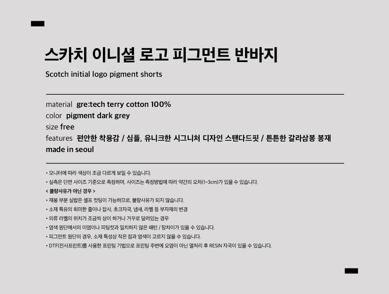 ㆍ교환 및 반품은 본 사이트 게시판 또는 그라운즈 스웻 담당자로 연락 주시면